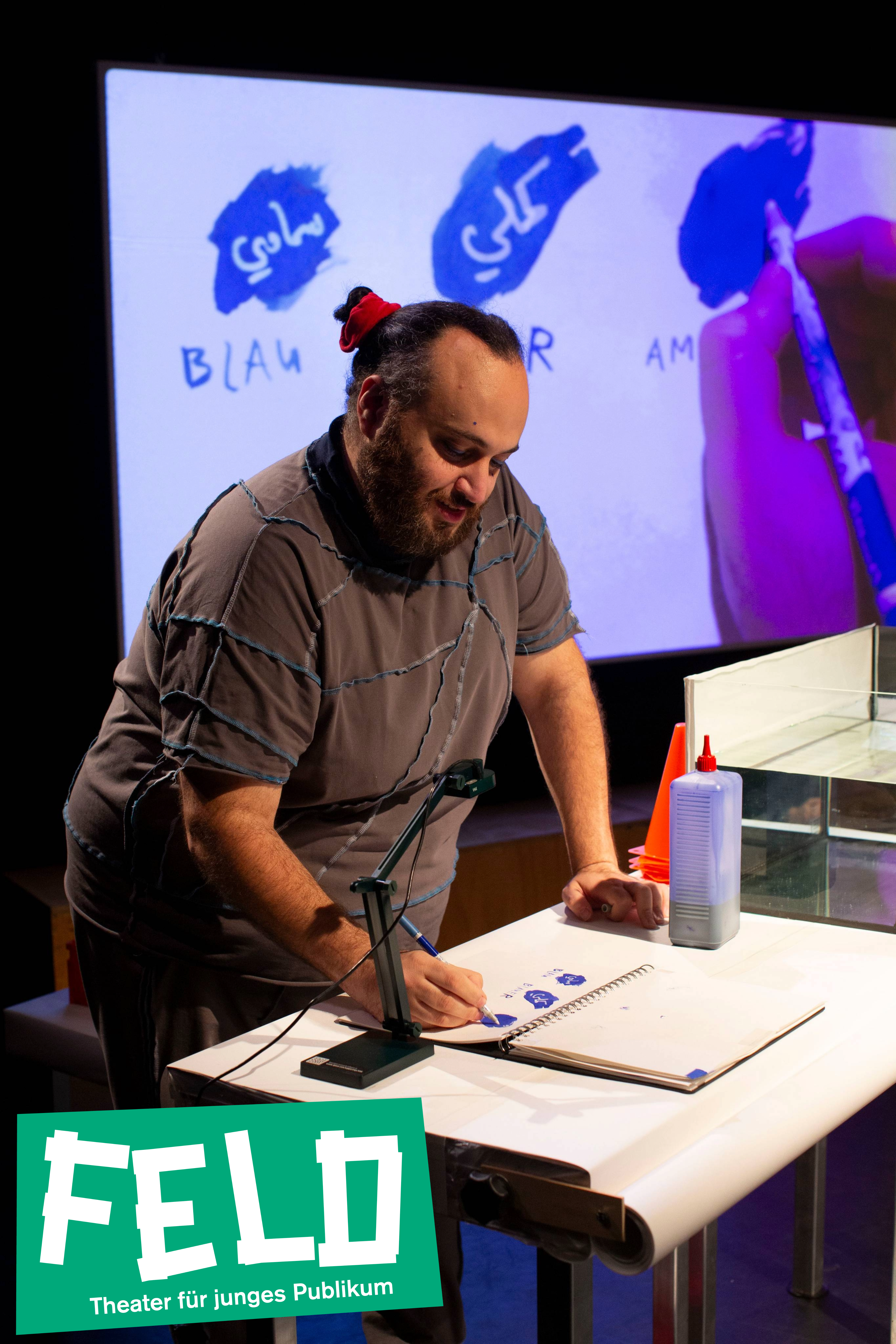 Was tut dir gut und versöhnt dich mit deiner Traurigkeit? Eine Umarmung, an Blumen riechen oder mit anderen spielen? Gemeinsam mit dem Publikum halten Indigo, Nebi und Azraa den besten Umgang mit der Traurigkeit auf ganz viel Blau fest. Dabei entsteht: Eine praktische Blaupause für die tägliche Zuflucht.